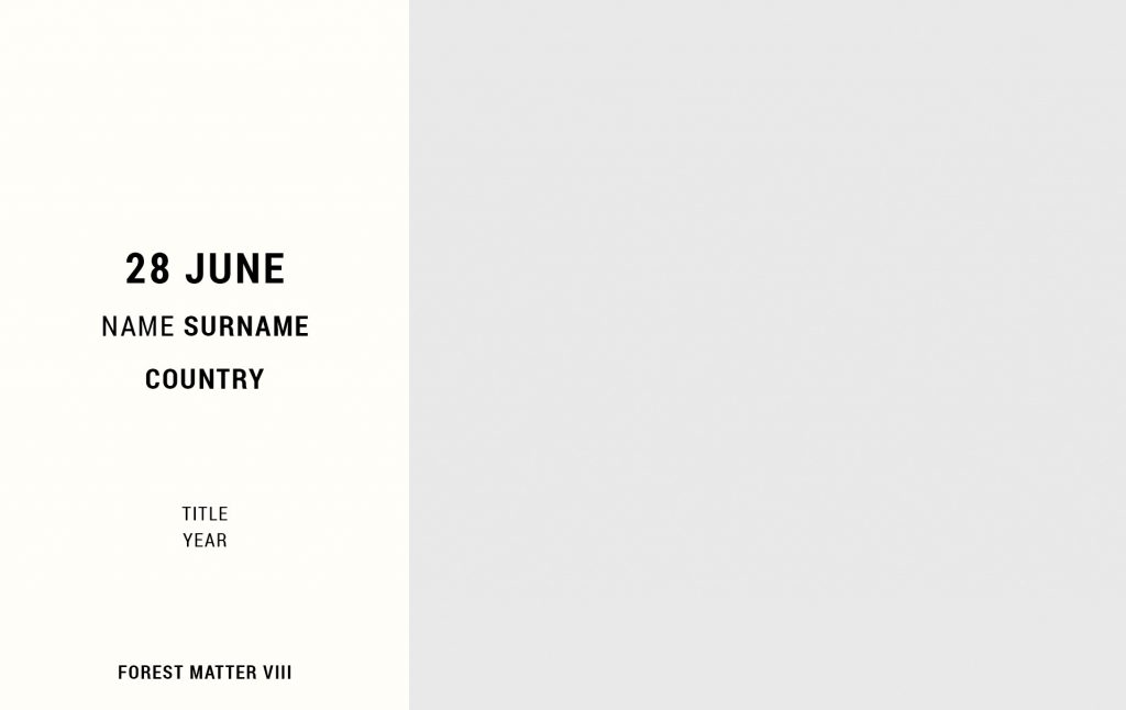 FOREST MATTER VIII · Title (year) · Name Surname, Country · 0’00”