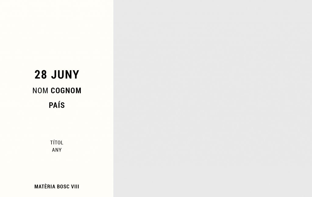MATÈRIA BOSC VIII · Títol (any) · Nom Cognom, País · 0’00”