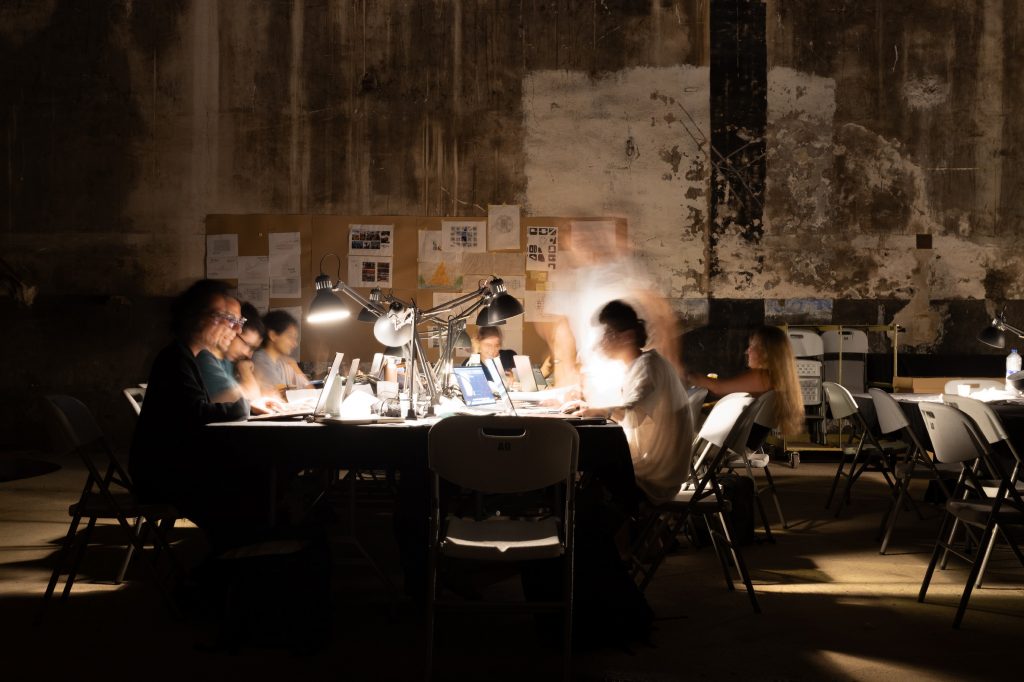 Taller creatiu. Treball en grup en un exercici per assajar la capacitat de resposta intel·lectualment interessant, de pertinença al lloc, que es comuniqui eficaçment, tal com s’esperaria en un concurs d’arquitectura.