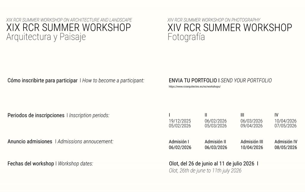 Programa Intern · Espai Barberí · Olot · Conferències RCR · Divendres, 26 de juny de 2026 i Dilluns, 29 de juny de 2026